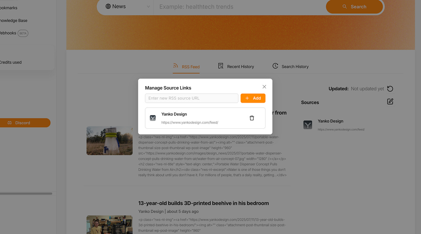 Now you can connect any RSS feed by entering its URL. This gives you an easy way to bring external contentâsuch as blogs, news updates, or academic sourcesâinto your workspace.